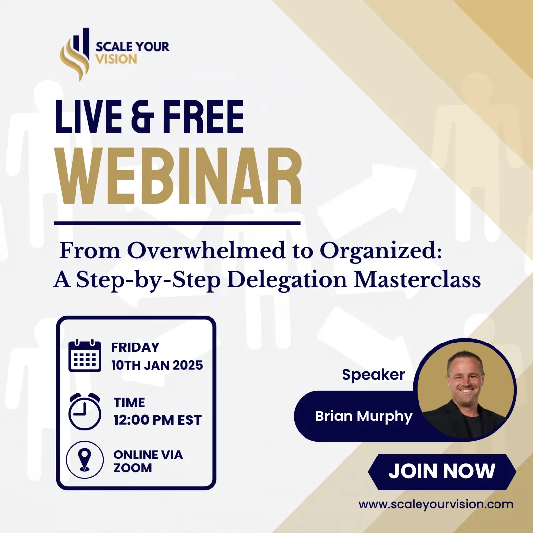 Through his Scale Your Vision online course, Brian shares his proven strategies for business growth, with a focus on leveraging virtual assistants to free up time, enhance productivity, and amplify profits. He combines practical tools with engaging coaching to show business owners how to scale smarter, not harder, while staying aligned with their vision. A passionate mentor, Brian is dedicated to helping entrepreneurs shift from overwhelm to opportunity, teaching them how to work on their business instead of being stuck in it. His actionable insights and thought leadership have been featured in top publications and podcasts, inspiring thousands to take the leap toward freedom and growth.